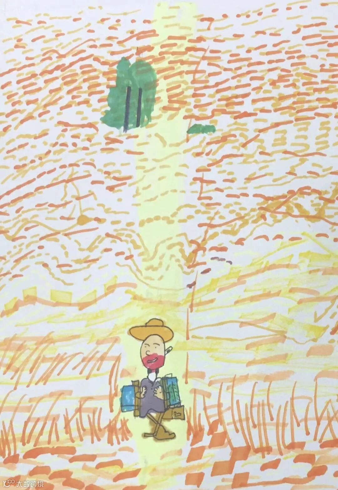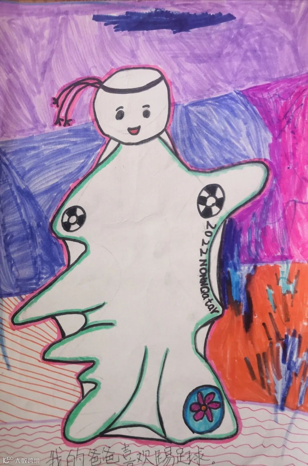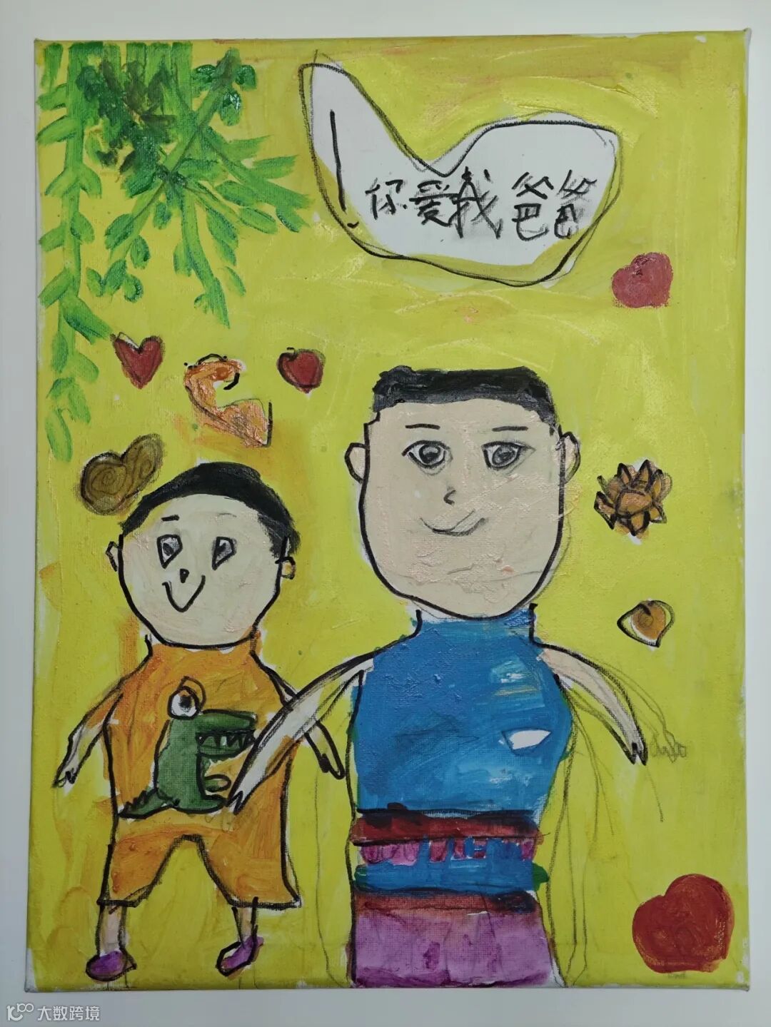 【右一】陈凤兴之子:爸爸经常做鬼脸,逗我们开心,哈哈,这次被我画下来了,祝爸爸天天开心。