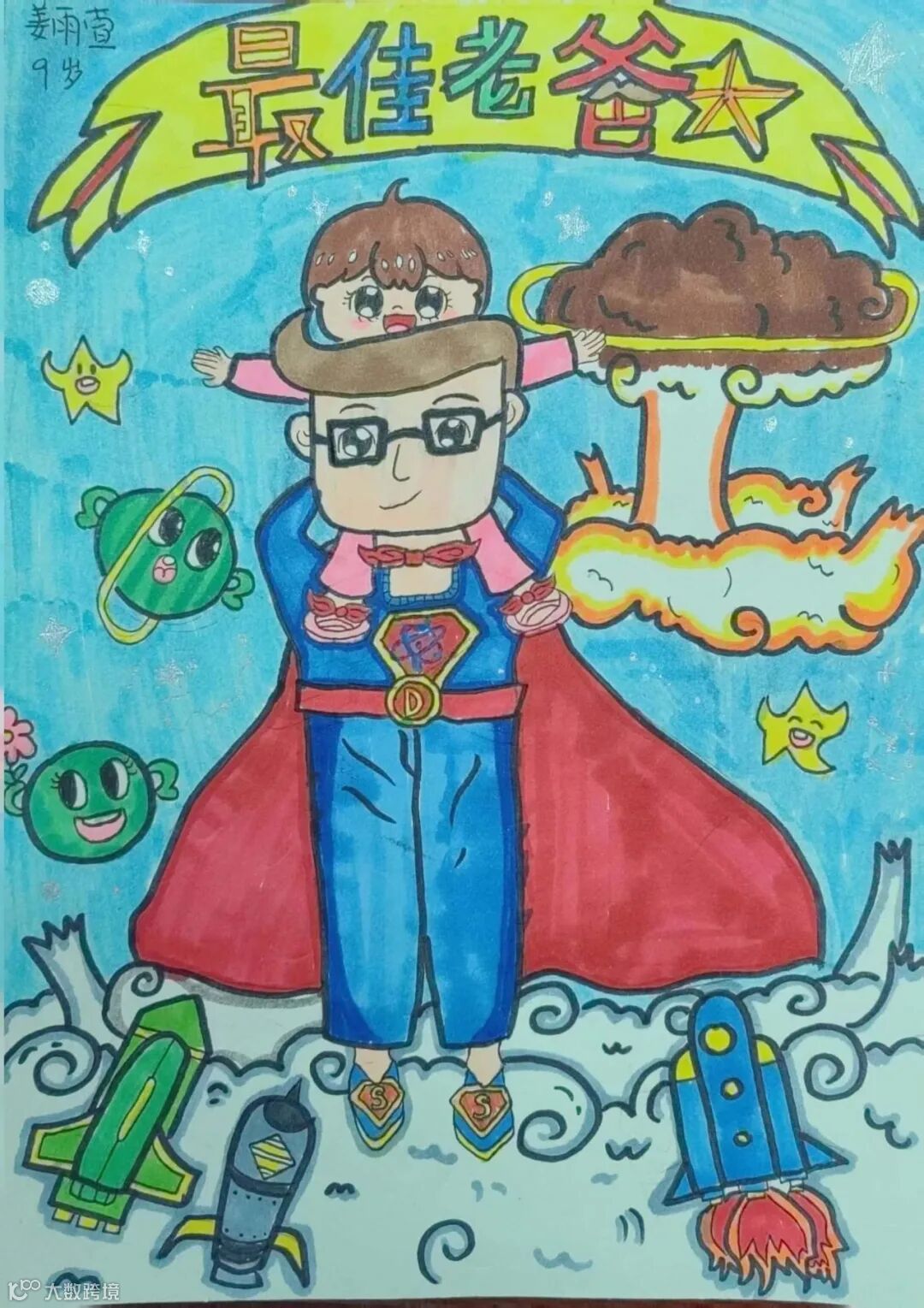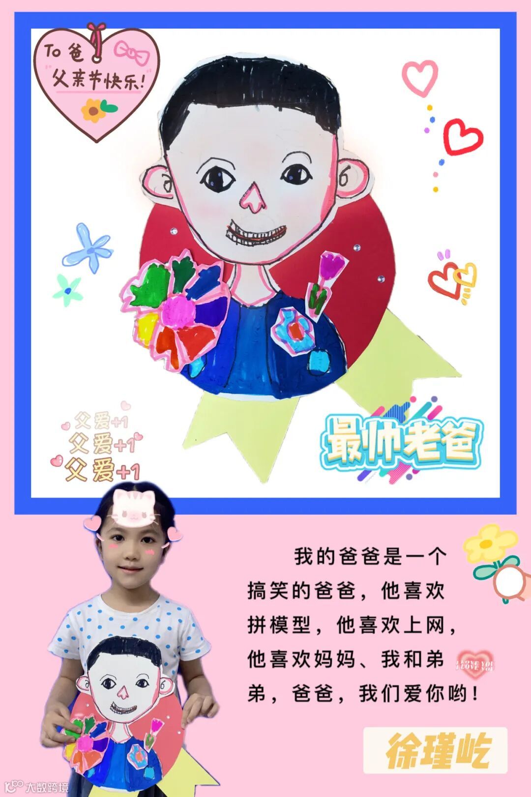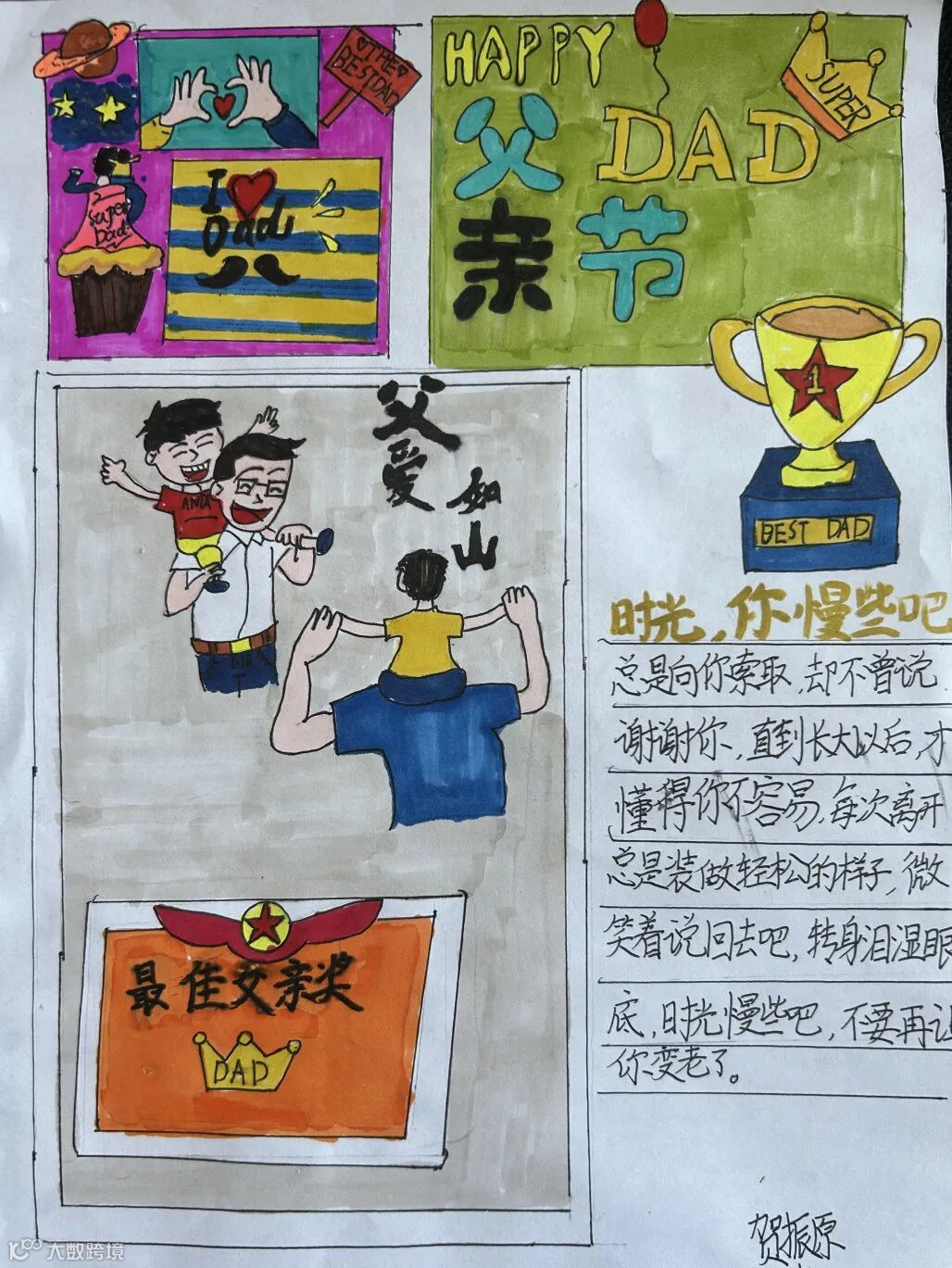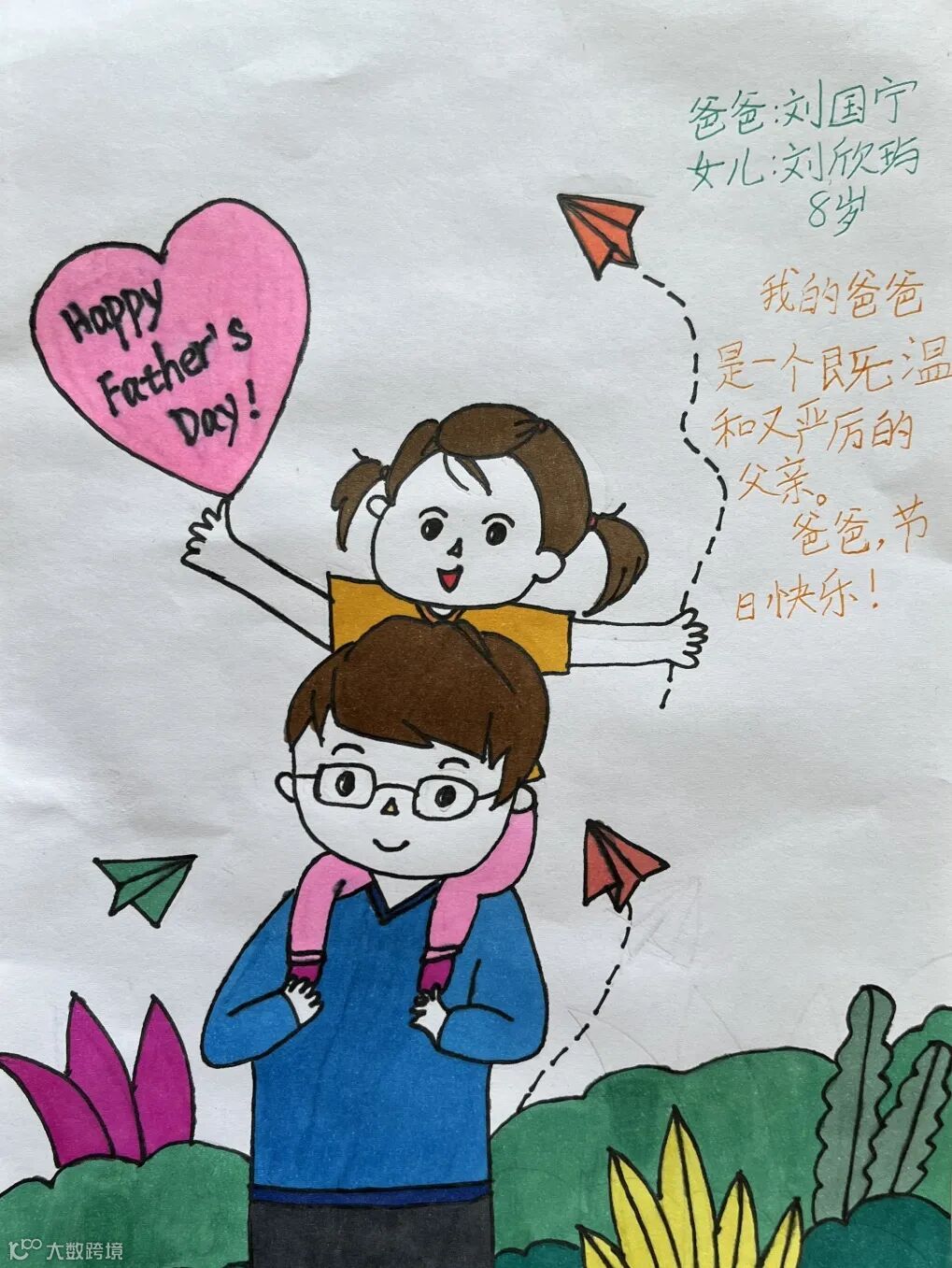 【右上】邵国钰之女:爸爸,我用手撕的彩纸做成了这幅画,把它作为父亲节的礼物送给你,节日快乐!