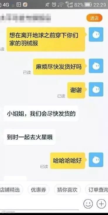一群嘴上说不买不买,手上却狂点装进购物车的吃土人士还是会抱着淘宝不放的(呵,我可看穿你们了),面对汹涌而来的买家,淘宝客服们也不是吃素的。说实话,有的客服,不去当段子手真是太可惜了。