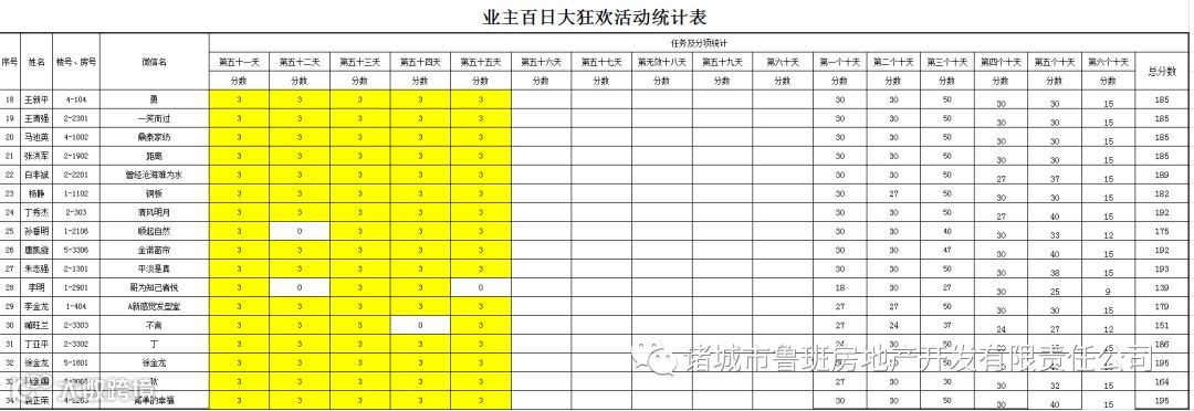 ③.活动结束后,依据业主得分,分高者胜。