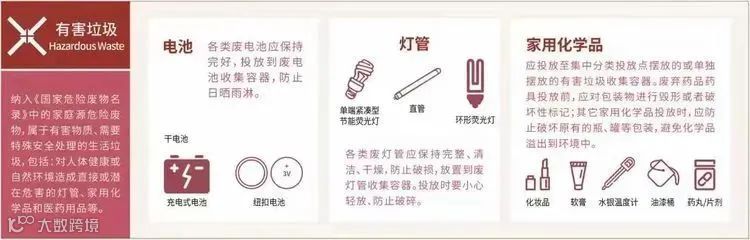 充电电池、纽扣电池、废旧灯管灯泡、废打印机墨盒、硒鼓等。