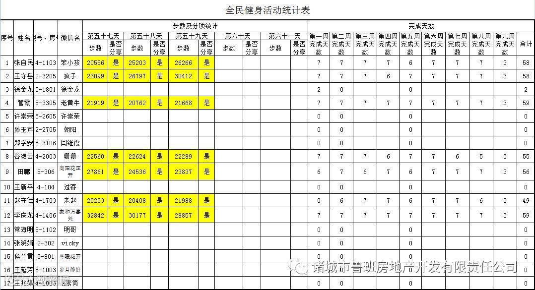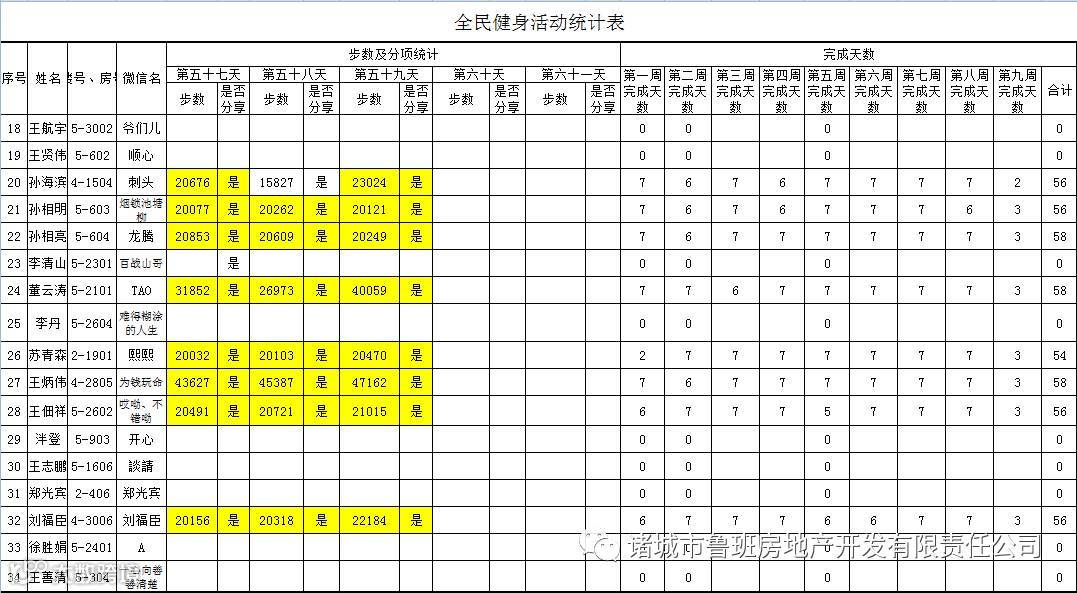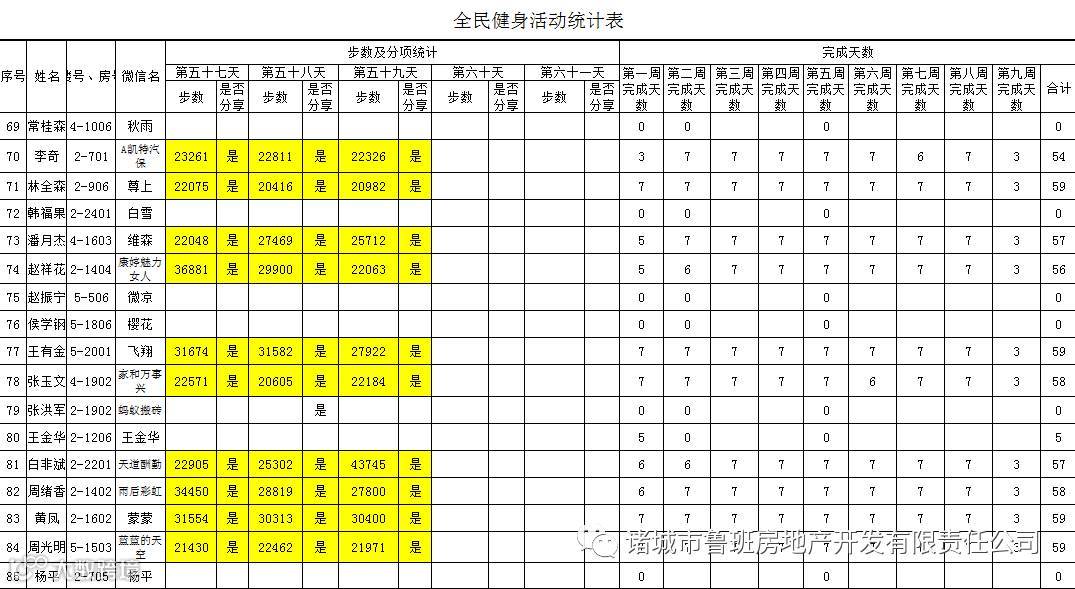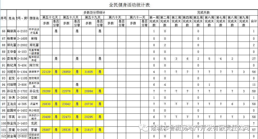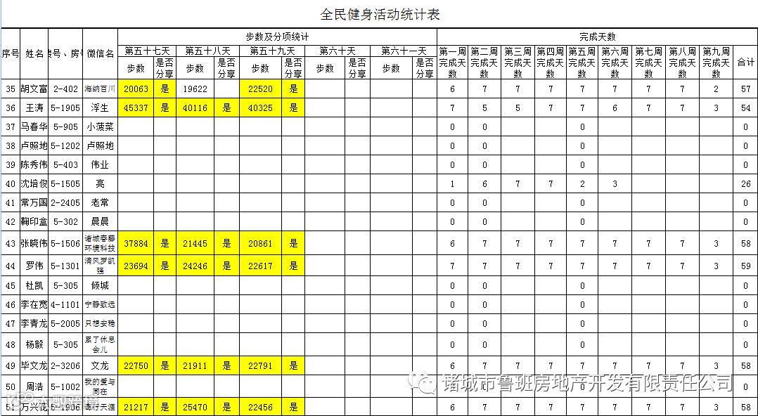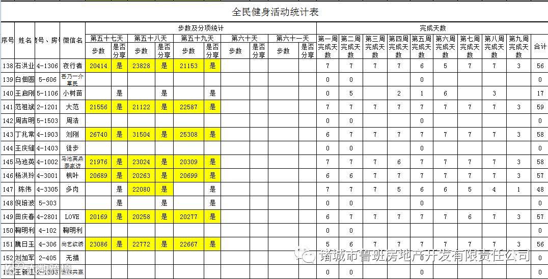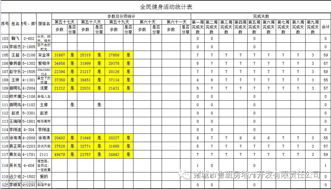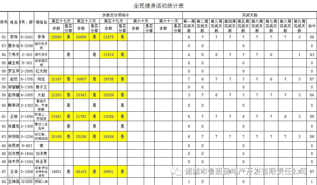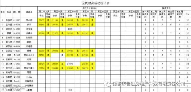 7月1日汇总参赛成绩,按完成天数计算