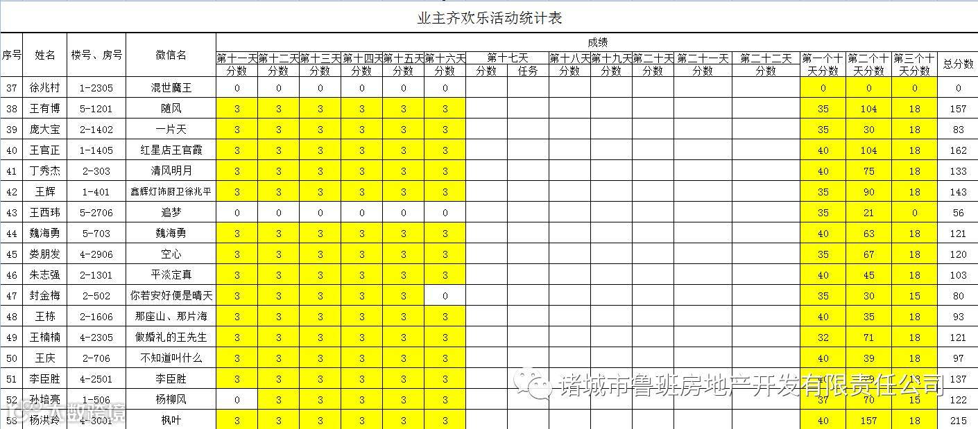 请各位业主们仔细核对自己的成绩,如有疑问可到鲁班·厚德丽园售楼处咨询。咨询电话:6184333 6124333