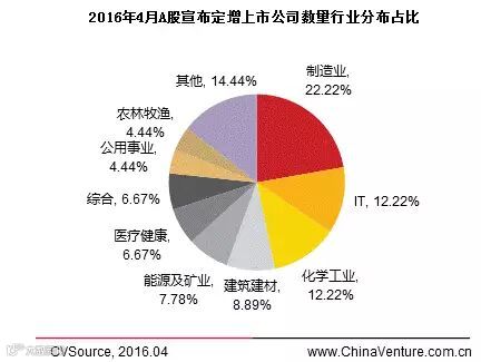 图3 2016年4月A股宣布定增上市公司数量行业分布占比