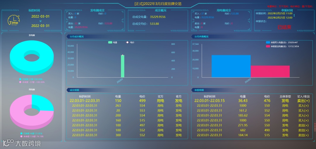 华能广东能源销售有限责任公司2月底,广东电力交易中心依次组织开展2022年3月份月度双边协商交易、月度挂牌交易、月度集中竞争交易。根据用电需求申报情况,全市场总用电量预计为262.1亿千瓦时,其中年度合同电量(含可再生能源交易)223.7亿千瓦时,月度交易需求为38.4亿千瓦时。
