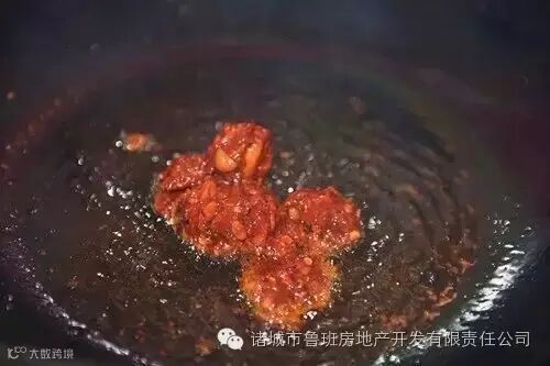 6.锅中放两勺油(和平时炒菜差不多就好),油烧热后,将剁碎的豆瓣酱下锅煸炒,炒出红油