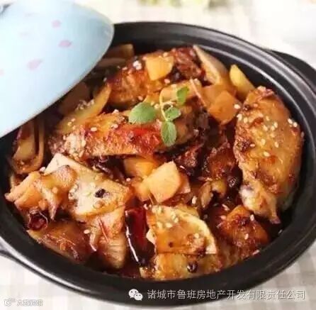 16.砂锅烧开水,将炒好的肉丁倒入砂锅内。