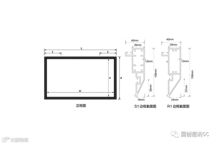 佳影画框边宽100mm,适用200寸大幕;