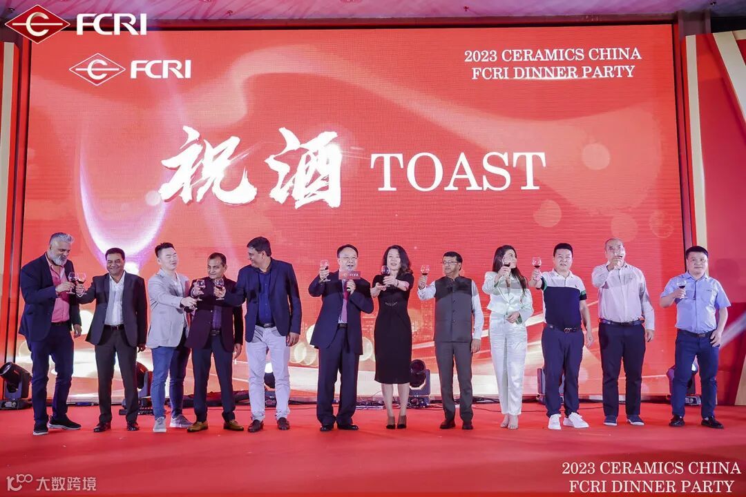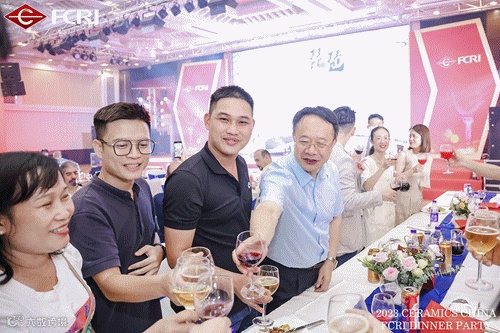 酒高兴至,在一片轻松欢快的氛围中,佛山金刚企业集团董事长冯斌,广东佛山市陶瓷研究所控股集团股份有限公司副总裁邢棉,广东金刚鼎晟科技有限公司副总经理杨帆,印度莫尔比陶瓷协会主席Mukesh Kundariya、Haresh Bopaliya、Mukesh Ughareja,印度金刚分公司总经理 Gautam Patel ,越南冠越集团董事长黄水生、副总经理黄开生,土耳其代理Cigdem Alci,马来西亚代理Henry Chua 等领导向现场嘉宾祝酒,正式开启当天的晚宴。