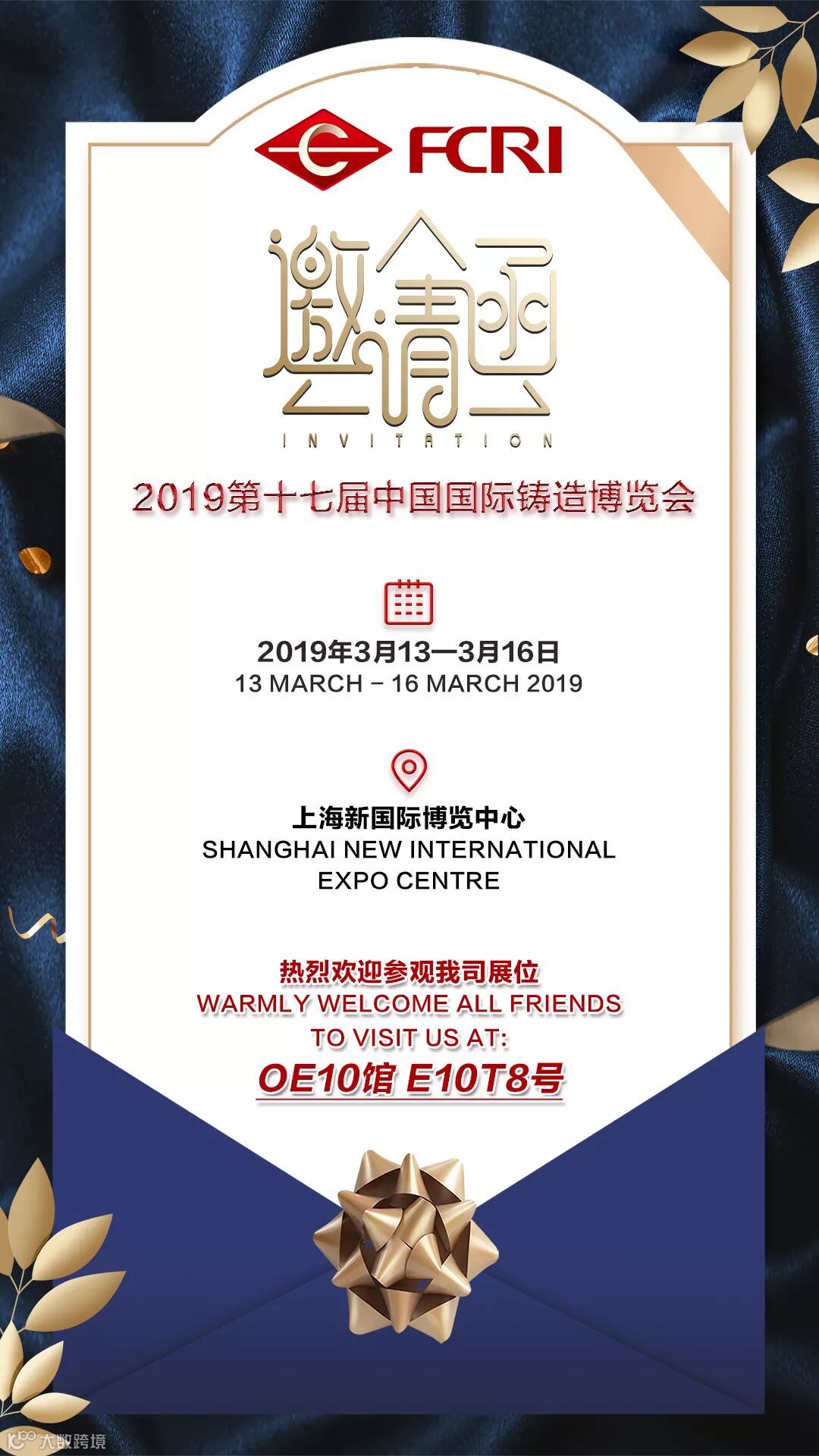 第十七届中国国际铸造博览会将于2019 年3 月13 日-16 日在上海新国际博览中心拉开帷幕,届时金刚集团将在OE10馆 E10T8号展位恭候您的光临!