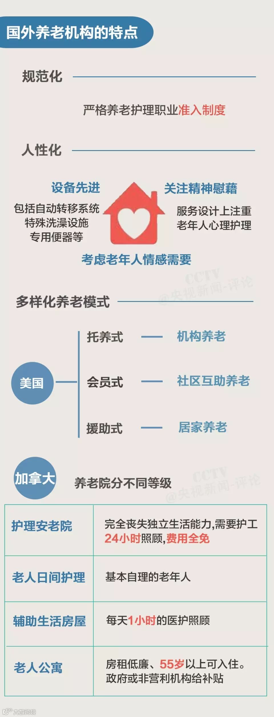 结语:我们养老院的现状是“医养结合”情况严重不足,相比欧美国家的养老机构缺乏人文关怀,不太注重老年人的心理护理和情感需要。其实,人们常说的“老有所养”也无外乎有适合的地方养老,有人陪伴,生病了有人照顾而已!