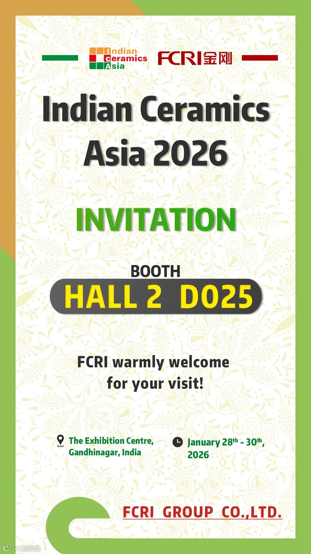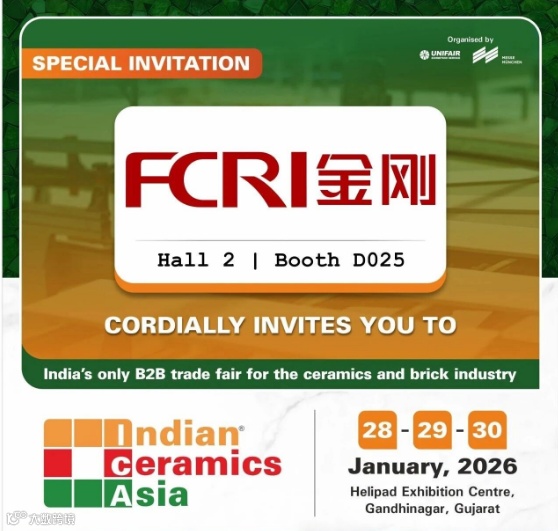 From 28th to 30th,Jan. 2026, FCRI Group invites you to visit Booth D025 in Hall 2 of the India Ceramic Exhibition. Come and experience our core products closely, engage in deep communication with our staff, and join together to create a better future!
