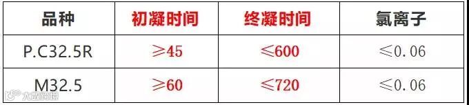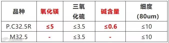 从上表中可以看出,M32.5水泥没有限定氧化镁和碱含量控制范围,如果用于生产结构混凝土,将存在安全质量风险。另外M32.5水泥凝结时间相对较长,对工程施工进度会有一定影响。