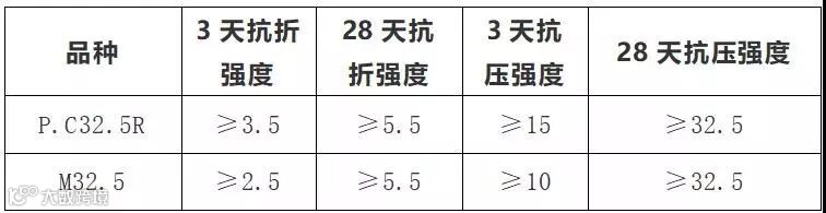 首先把P.C32.5R标号水泥和M32.5标号水泥的主要指标作对比,见下表: