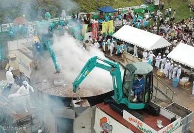 想起曾经最火的一句话:“挖掘机哪家强?”,在一段时期内网络上到处充斥着这句广告语。在最近,被人慢慢淡出的“挖掘机技术哪家强?”又出现在人们的视线里。在日本山形县,当地一年一度的“日本第一煮芋头大会”,主办单位使用两台改造的挖掘机当锅铲,在直径6米的超大铁锅内烹煮芋头,这一大锅芋头,份量大约有3万份。