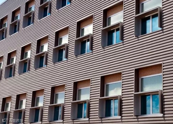 网板式外遮阳多采用金属孔板或金属网制成,密格栅式外遮阳一般以木质、金属或合成材料制成,两者形成建筑围护结构之外的一层表皮,使得光热经过表皮的过滤再接触里面的围护结构,削弱过强的太阳辐射和过高的自然光照度,达到遮阳效果。