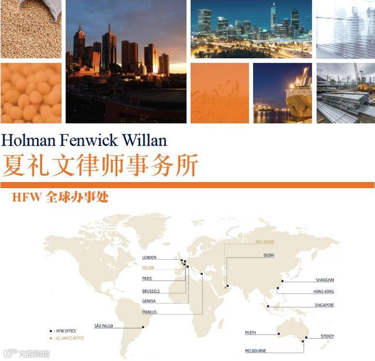 夏礼文律师事务所Holman Fenwick Willan (HFW) 是一家总部位于英国伦敦的综合性国际律师事务所,在11个国家设有分支机构,拥有超过475名遍布全球的律师和顾问,专业领域包括海运海事、公司业务/并购/项目、能源和资源、建筑和工程、航空、移民等。