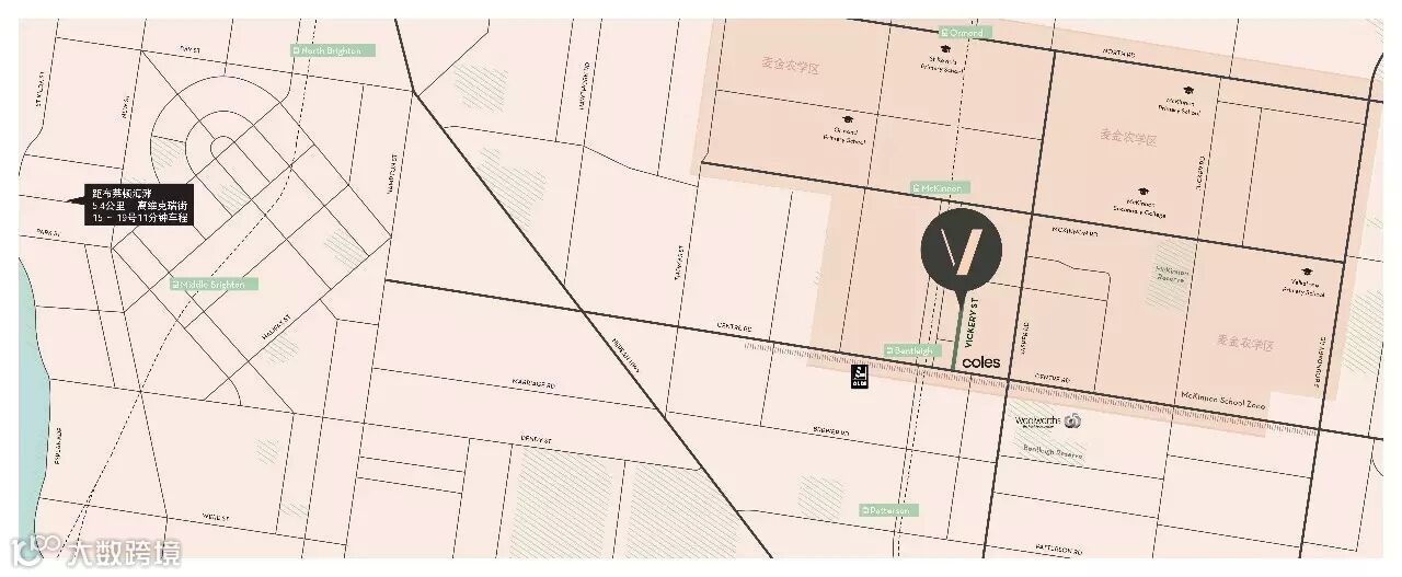 (图中右上角深色部分,为麦金农学区McKinnon School Zone,VICKERY公寓正好位于该区范围内)