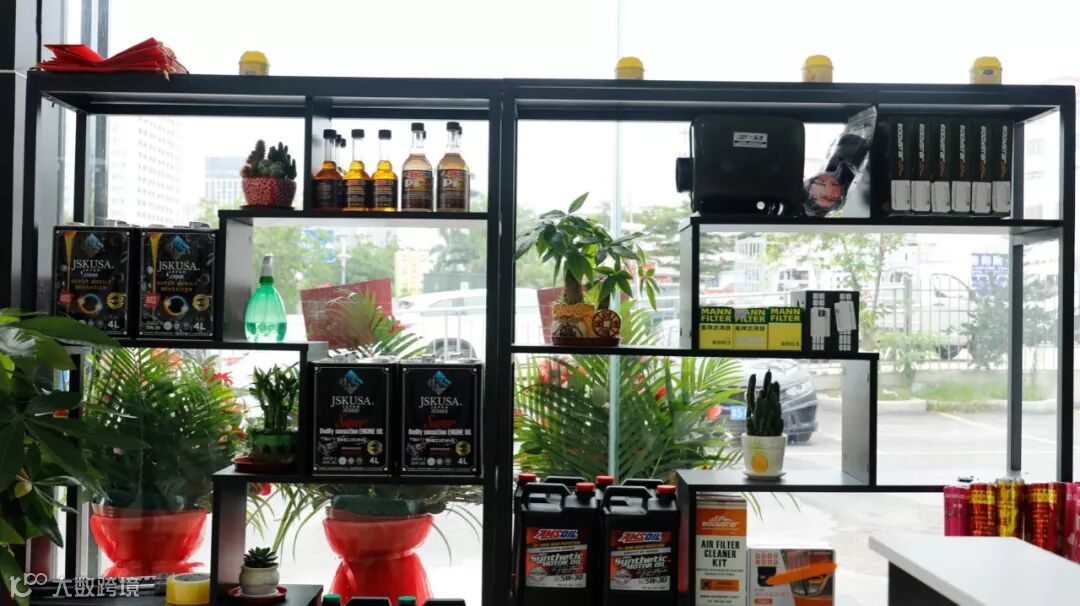 这个展示架除了产品之外还摆了点小植物