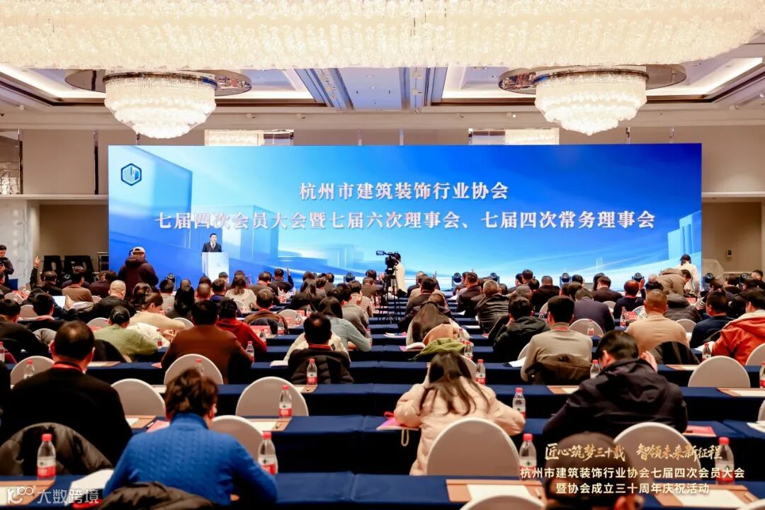 2026年1月21日,杭州市建筑装饰行业协会七届四次会员大会暨协会成立三十周年纪念活动在杭州盛大举行。大会以“匠心筑梦三十载,智领未来新征程”为主题,现场审议2025年工作报告,成立旧城改造分会,并举办协会成立30周年庆祝活动。