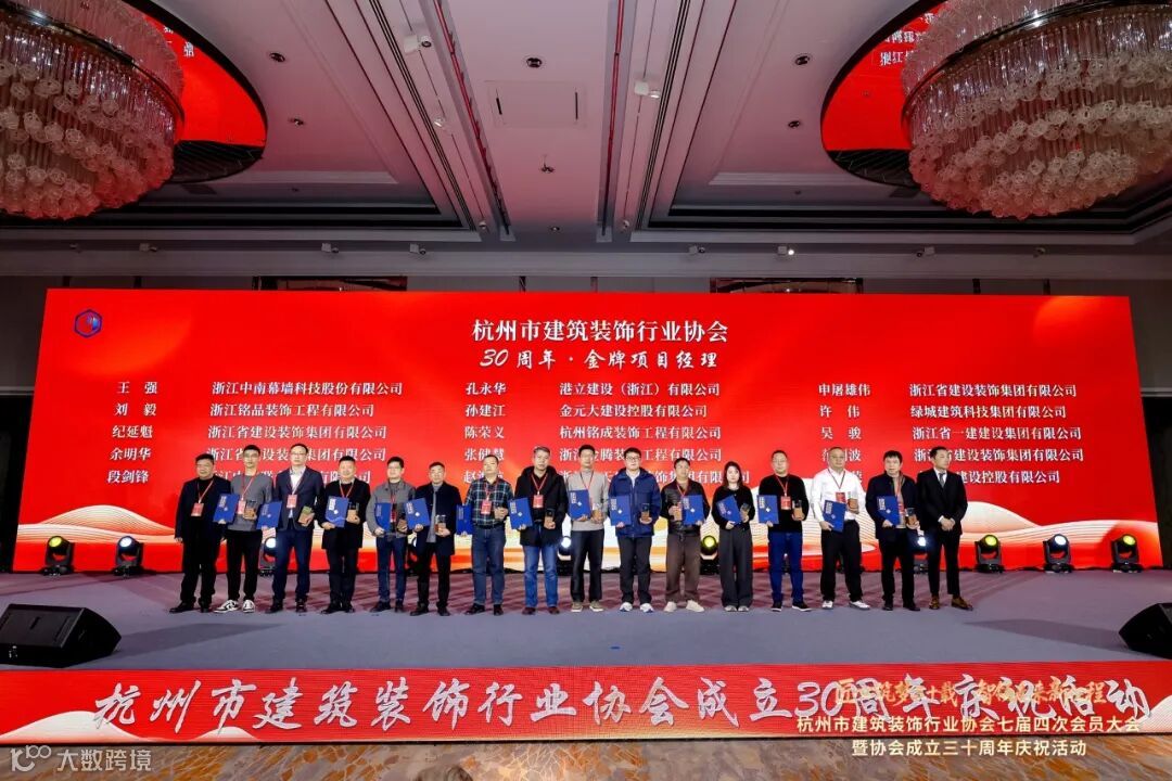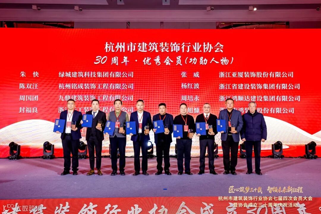 绿城生活科技集团副总经理、绿城建筑科技集团总经理朱快荣获协会30周年优秀会员“功勋人物”,集团员工钱航程、裴旭、许伟等三人分别获得30周年优秀会员“协作贡献人物”、30周年“金牌项目经理”奖项。