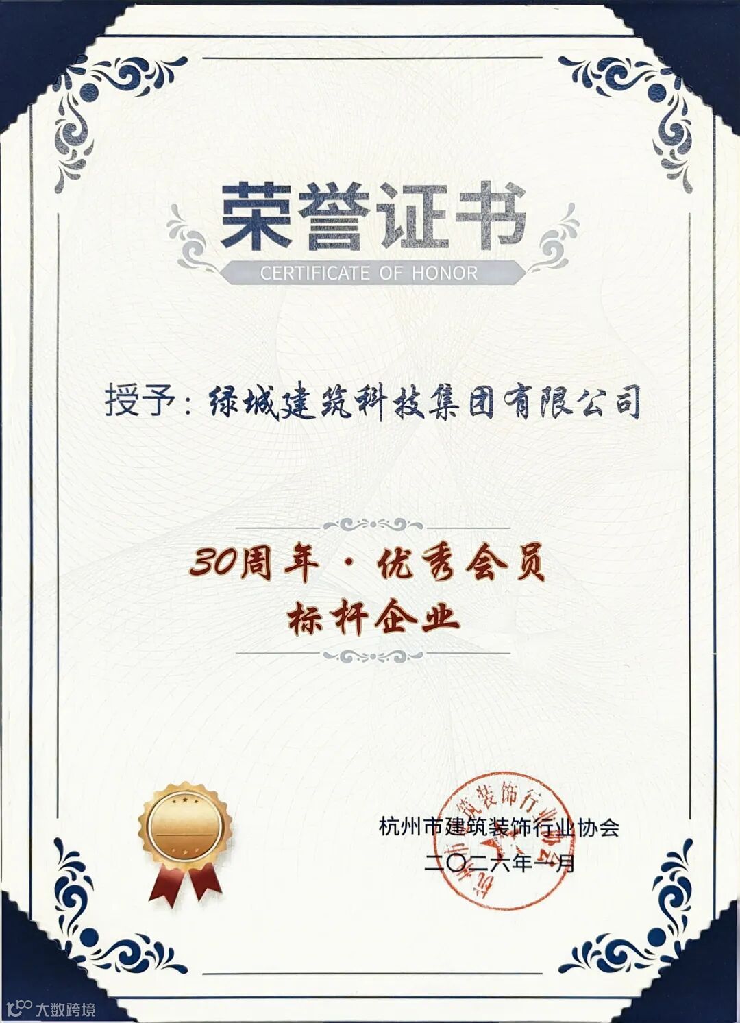 自创立以来,绿城建筑科技集团始终牢牢扎根杭州、布局全国,与协会及行业伙伴同频共振,在行业变革浪潮中勇立潮头。本次大会上,集团一举荣获协会30周年优秀会员“标杆企业”等七项重磅表彰。