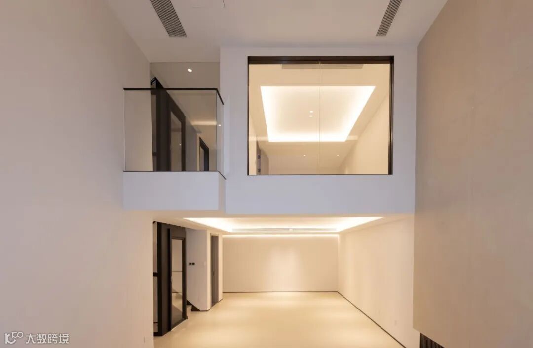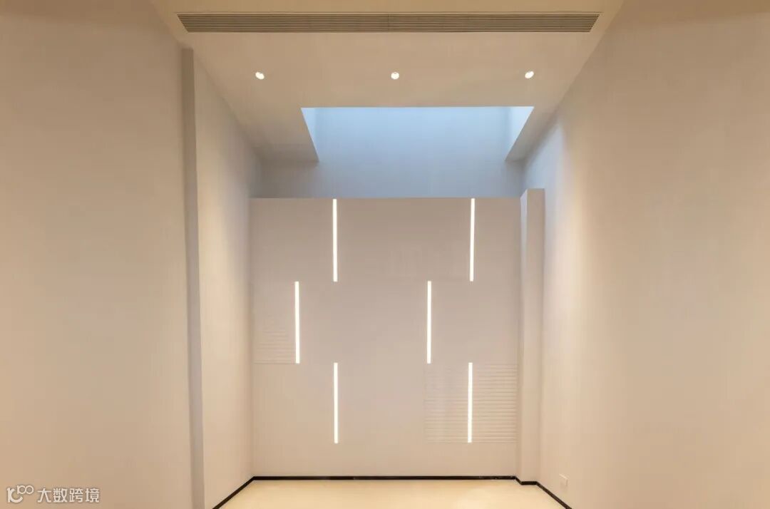 最终,团队以极简天花收口工艺,通过阴影缝、预埋式手法实现干净利落的收口,并巧妙嵌入灯光,实现“见光不见灯”的悬浮之美。