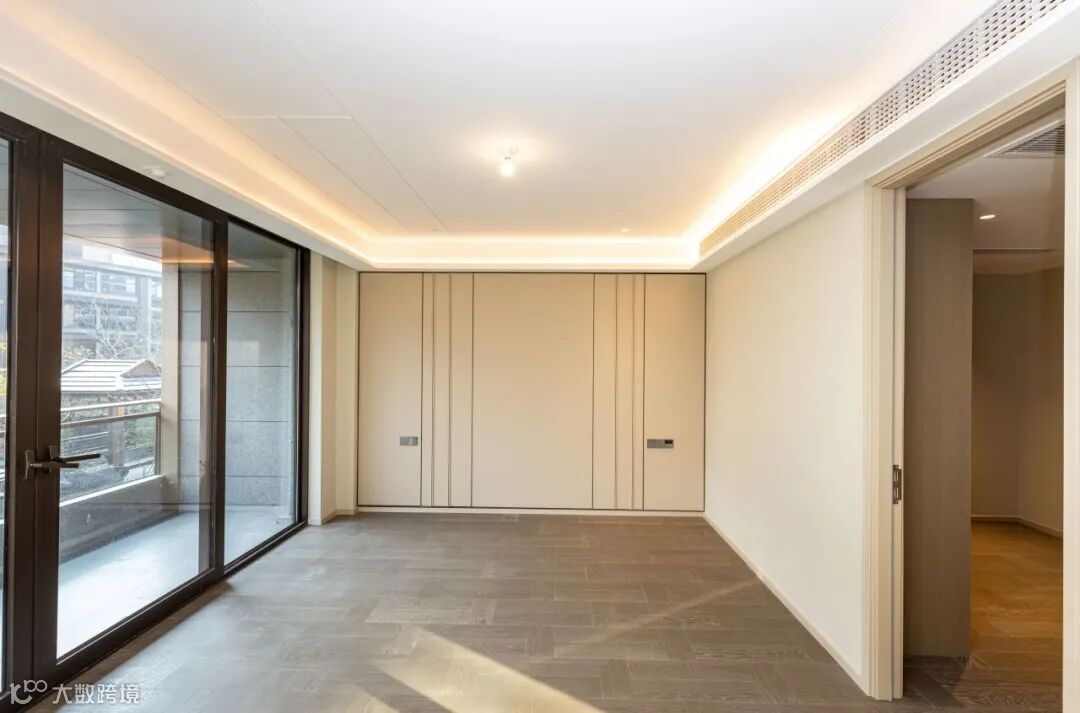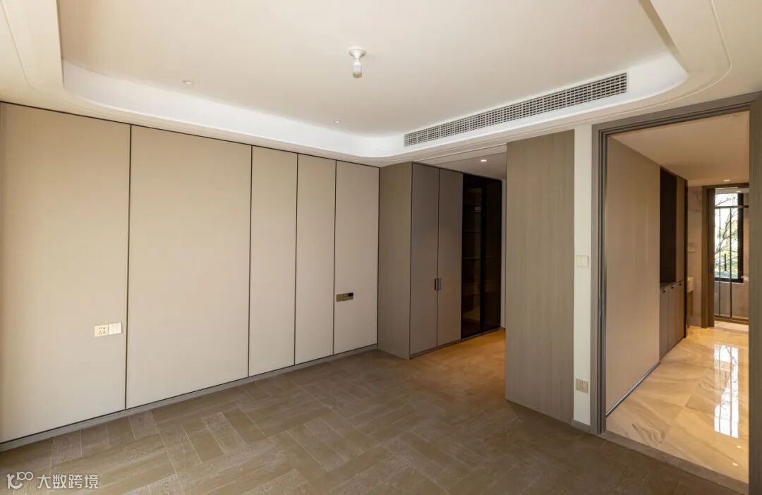 又如隐形门系统工艺,通过 “材质统一、结构隐蔽、开合无声” 三大工艺,既弱化了门的“存在感”,又配合液压铰链与磁吸闭门器,在关门时自动吸附对准、与墙面浑然一体,实现极致消隐,契合项目 “大雅至简” 的设计基调。