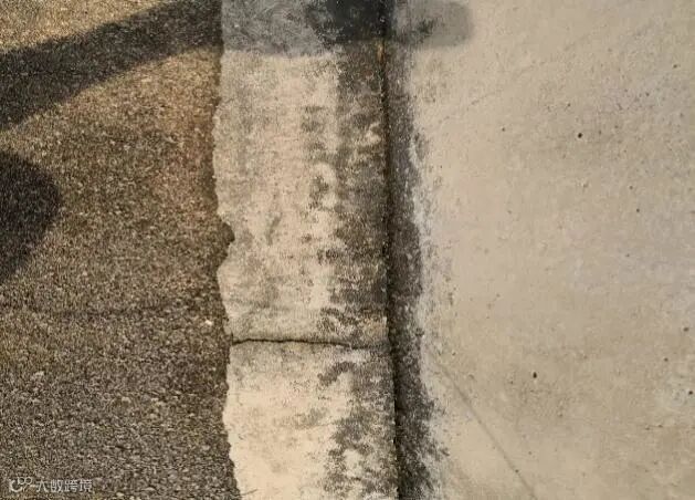 经过澳昌防水的技术人员现场排查后发现,阴角倒角与原基面脱离,导致屋顶四角积水问题严重。虽然伸缩缝和局部屋面曾经用沥青类卷材进行修补,但材料已经老化失效。