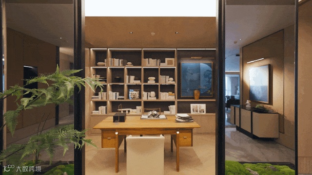 餐厅与书房区域,以古铜色不锈钢框内嵌竖纹夹丝玻璃,采用欧洲五金轨道KEYTEX,开启灵敏轻松无异响,充分保障书房的静谧隔音。