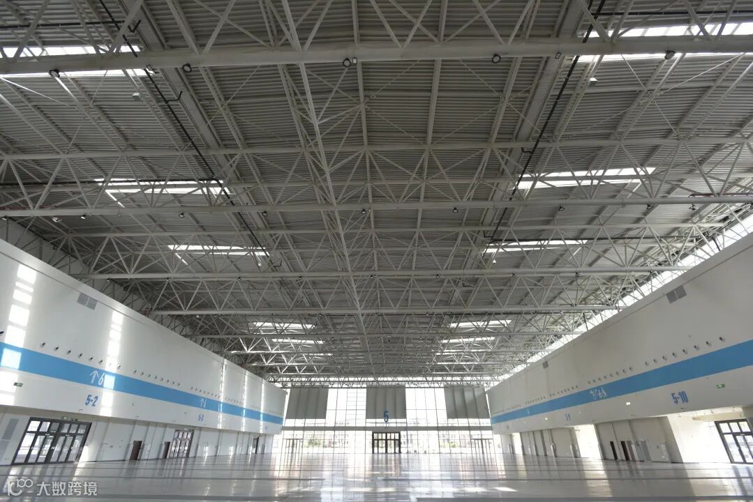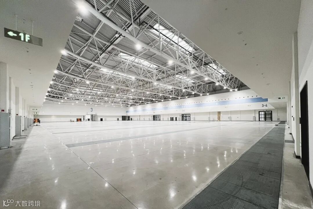 台州国际博览中心展馆区共设置七大展厅,总计可容纳3100个标准展位,单个展厅展览面积从6600㎡-7700㎡不等。各展厅内部空间不设立柱,格局极为开阔。