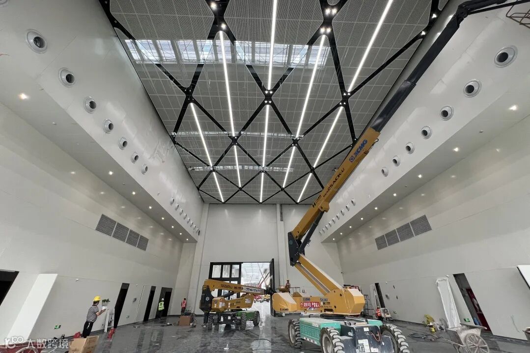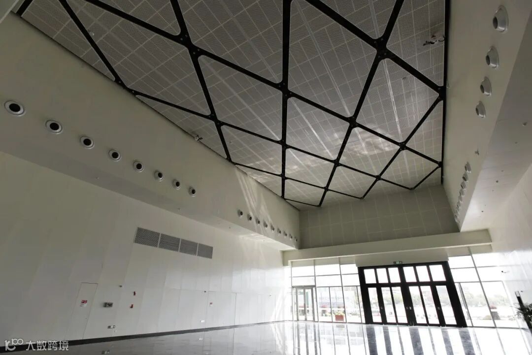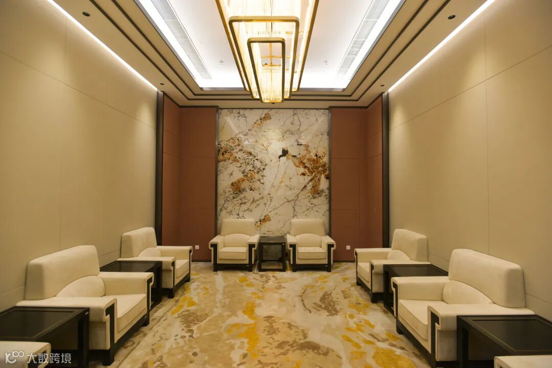 在项目会议室、会客室及贵宾室等空间营造中,团队也以高质量标准交出品质答卷。登录厅会议室的墙体经过精心的隔音处理,表面密布的吸音孔犹如一个个微小的声学通道,将噪音导入内层吸音棉,巧妙实现声音的消散与吸收,为会展期间的高效会议提供了有力保障。