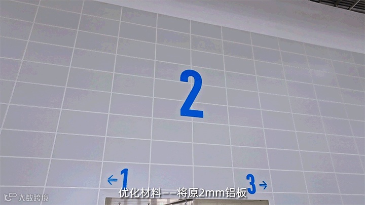 为更好提升平整度和高处区域合格率,团队参考行业优秀案例设定了更高目标,并采取三大改进措施:一是将原2mm铝板加蜂窝复合的形式,升级为强度更高、稳定性更优的2.5mm加厚铝板,大幅提升抗压性能;二是重新设计挂件,将连接面积扩大数倍,双重加固更稳定;三是优化安装流程,缩短工时同时减少损耗。