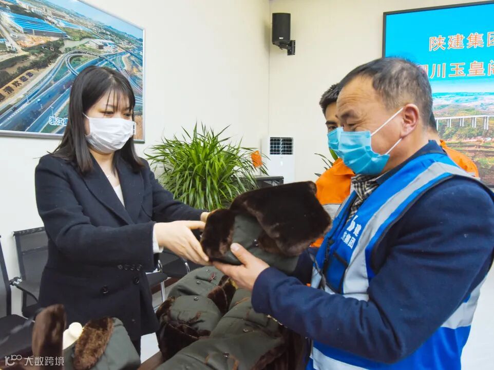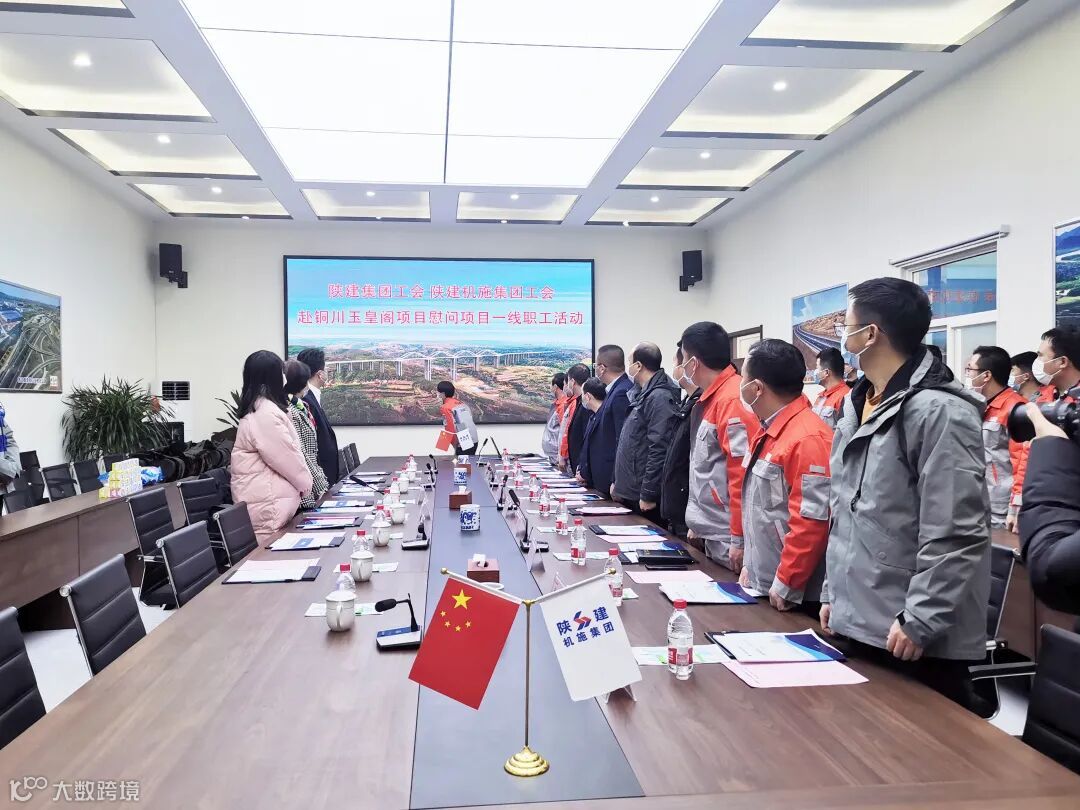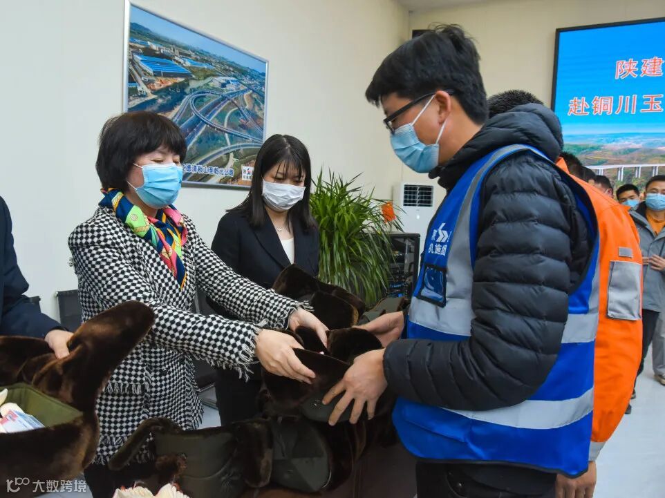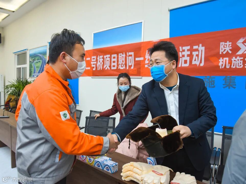1月15日,陕建集团女工主任、机关工会主席刘爱英,陕建机施集团党委委员、职工董事、工会主席徐永宏,陕建机施集团工会副主席弋戈一行赴玉皇阁二号桥及引线工程项目看望奋斗在一线的建筑职工并送上新年祝福和生活用品。