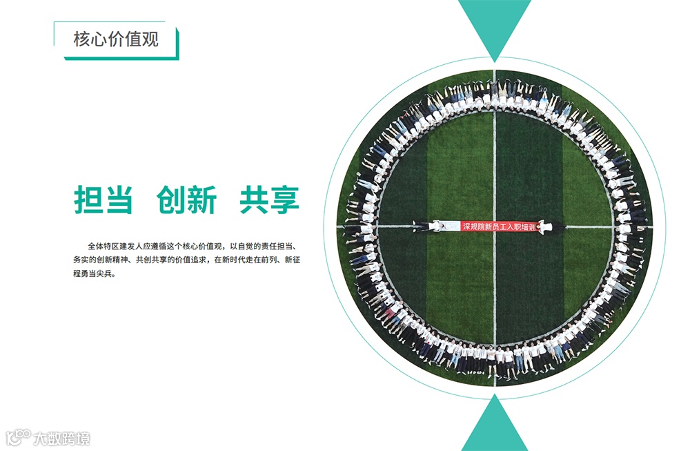 共享,即让员工共享企业发展的成果,让社会共享新型城市发展的成果,构建命运共同体,实现融合发展、共享共赢。业务发展中,坚持互惠互利、相得益彰,共创价值、共担风险,提振信心、共同发展;员工成长中,坚持共同创造、共享成果,为奉献者搭建舞台,为奋斗者搭建平台,让员工在为企业和社会创造价值的同时实现个人发展。