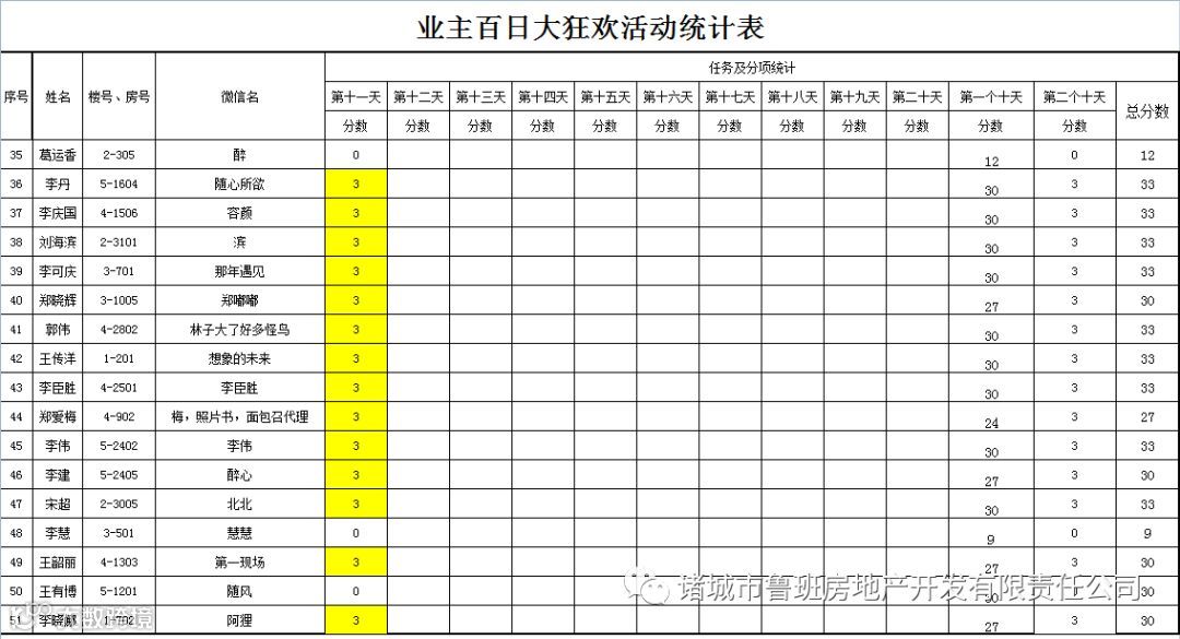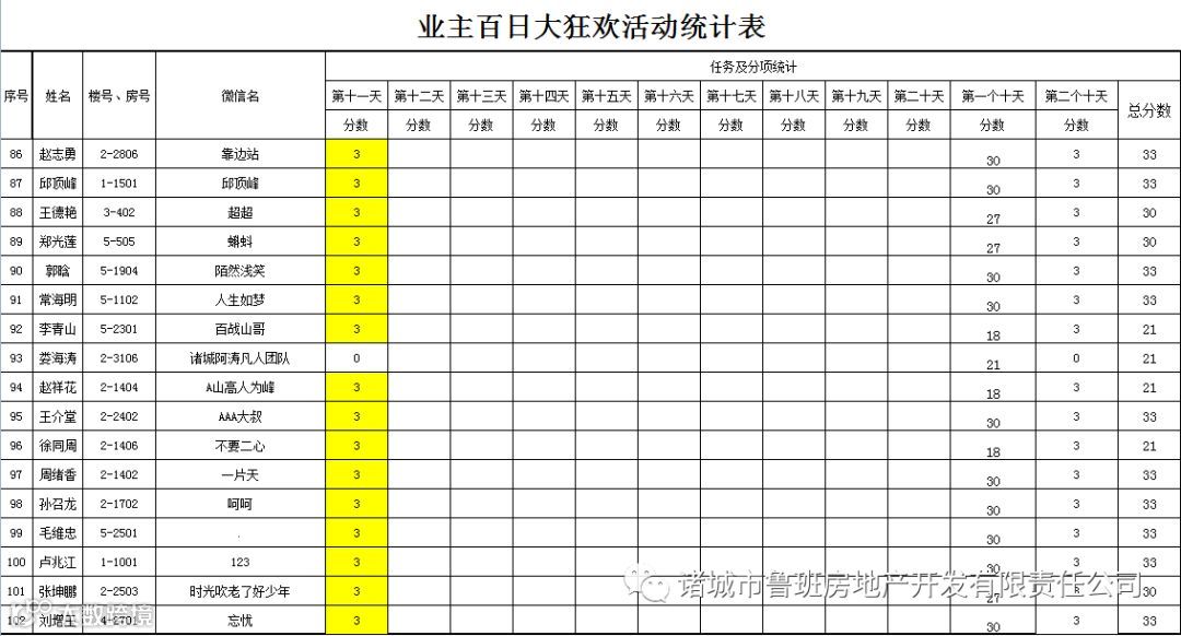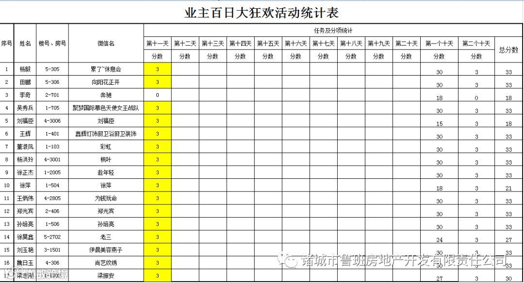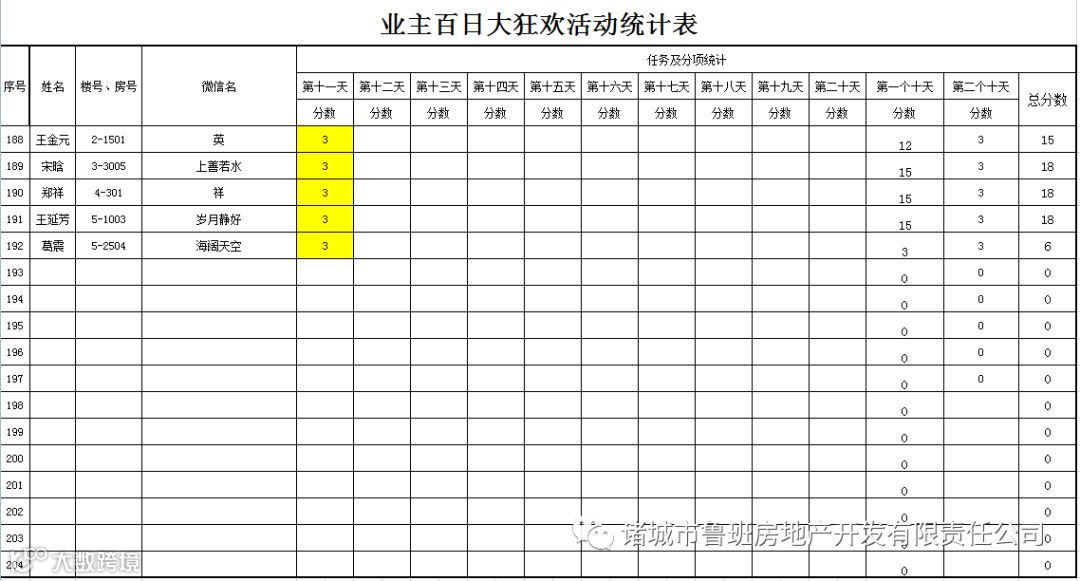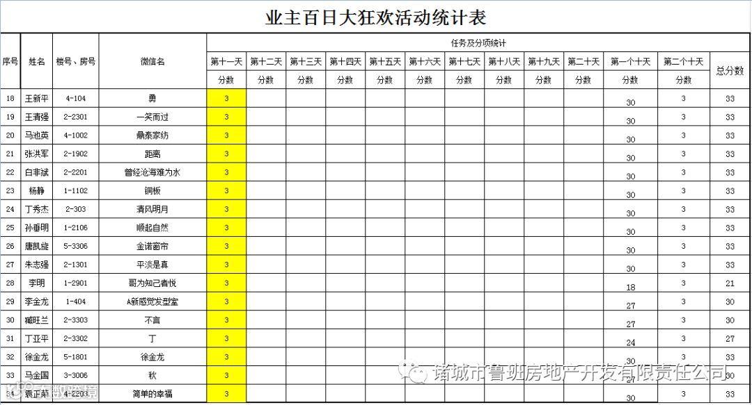 ③.活动结束后,依据业主得分,分高者胜。