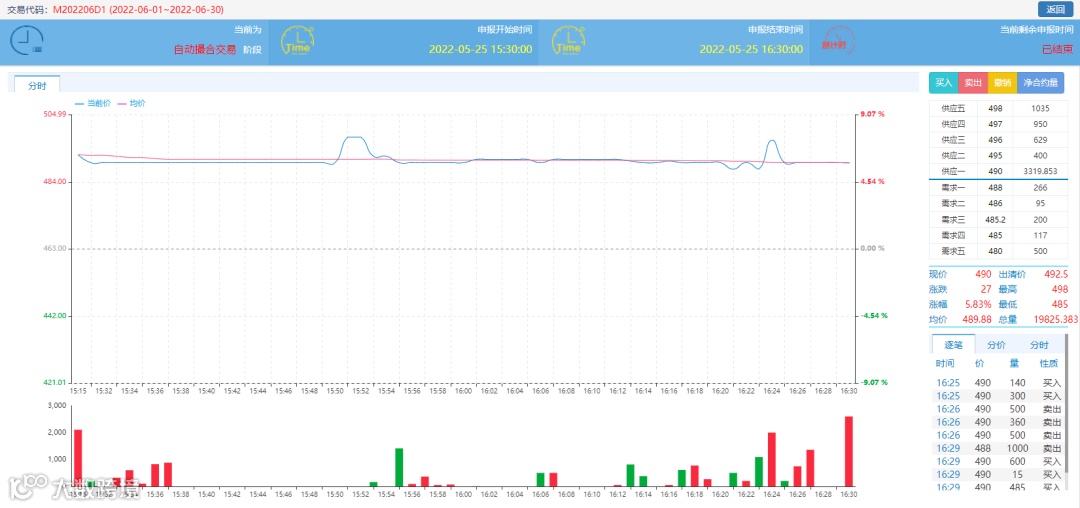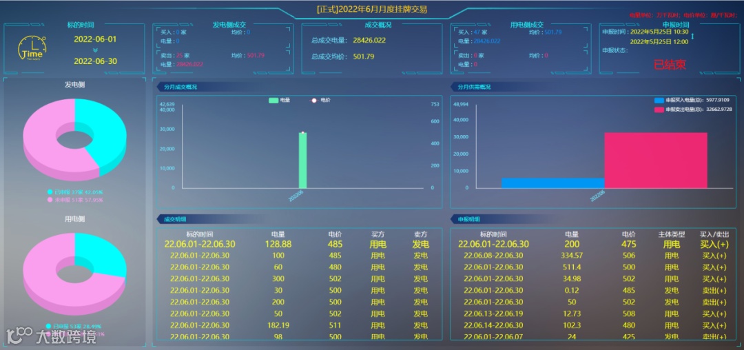 集中竞价阶段出清价为492.5厘/千瓦时,滚动撮合阶段最高成交价为498厘/千瓦时,最低成交价为485厘/千瓦时,最终总成交电量1.98亿千瓦时,成交均价489.88厘/千瓦时,环比下降64.12。
