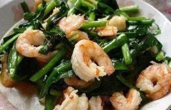 韭菜150克,鲜虾250克(去壳),炒熟佐餐。功能补肾益精,本品燥热助火,体壮阳盛者忌食。