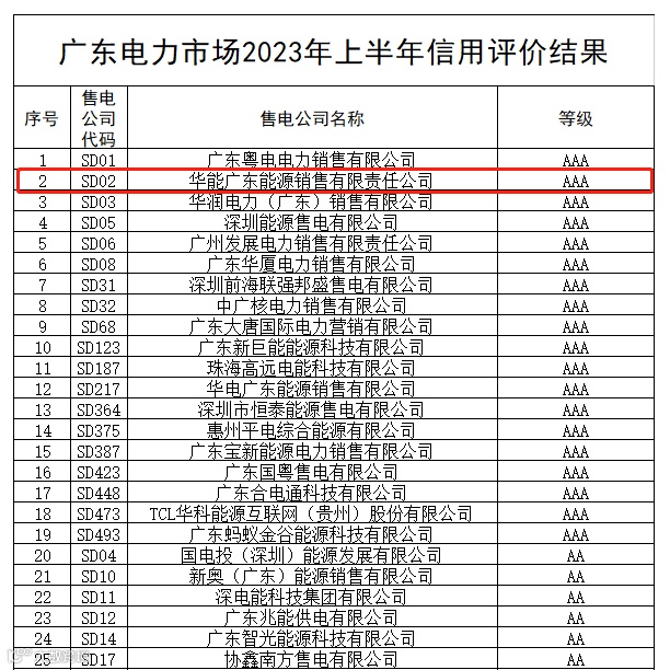华能广东能销公司再获“3A”评级