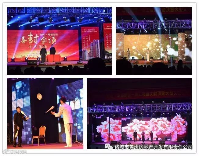 上午9点30分左右,封顶庆典仪式达到高潮,主题活动在诸城市府礼堂举行,观看演出的鲁班房地产代表,济南一建代表和购房朋友们济济一堂,现场气氛非常热烈。