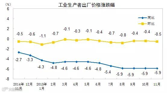 2015年11月份工业生产者出厂价格同比下降5.9%