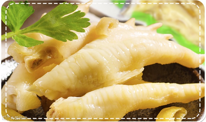 在南方,凤爪可是一道上档次的名菜,其烹饪方法也较复杂。它富含谷氨酸,胶原蛋白和钙质,多吃不但能软化血管,同时具有美容功效。