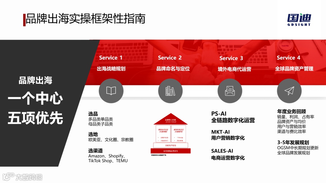 选渠道:结合海外平台特性(Amazon/Shopify/TikTokShop/TEMU等)与品牌定位构建全渠道矩阵
