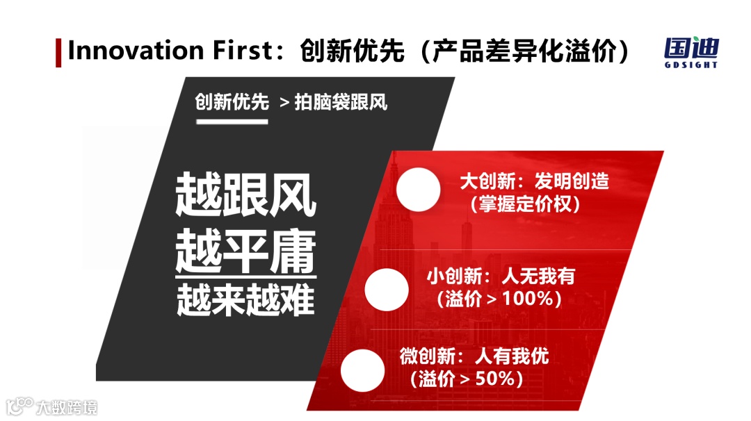 创新是确立产品市场竞争优势的核心驱动力。企业需持续加大研发投入,深化产品创新实践:微创新即聚焦现有产品的优化升级(如配方改良、工艺精进、性能提升),通常可带来约50%的溢价空间;小创新即致力于开发具备独特属性或功能的新产品,溢价潜力往往超过100%;大创新即通过原创性发明或颠覆性技术,创造全新市场或品类,从而掌握定价主导权。