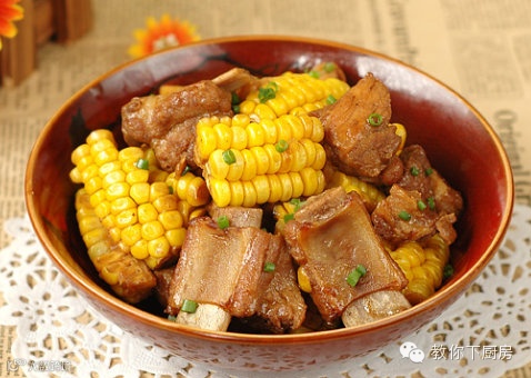 用料:猪大排 500克、玉米 1根、料酒 适量、姜 适量、生抽 适量、老抽 适量、蚝油 适量、冰糖 适量、胡椒粉 适量、色拉油 适量 1、猪肋排斩小块洗净,用清水浸泡20分钟后捞出沥干装碗,加料酒,姜,生抽,老抽,蚝油腌半小时左右 2、玉米洗净斩大块备用 3、热锅上油,没热后,放入腌好的排骨煎至边缘略有些金黄。加入姜片煸香 4、倒入玉米块略炒 5、加入没过全部食材还略多的清水,加盐,冰糖调味,盖上锅盖,大火烧开后转中小火焖40分钟左右 6、加入胡椒粉提味,大火把汤汁收到浓稠即可