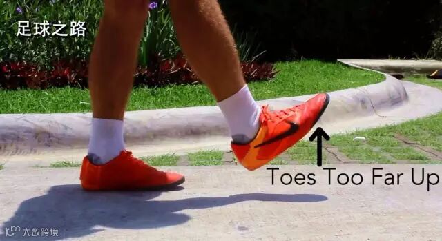 尽管这次你的脚踝锁死了,但是由于脚尖过分上翘,球落到脚面后反弹向你的腿或者身体。