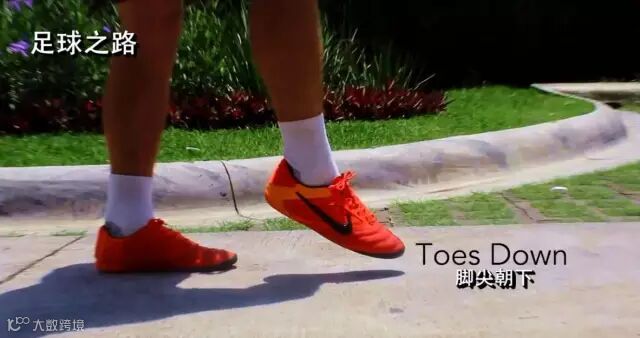 从下图你可以看到,如果你脚尖朝下脚踝没有锁死的话,很难控制住球,要么不会弹起,要么会蹦出你的控制范围。