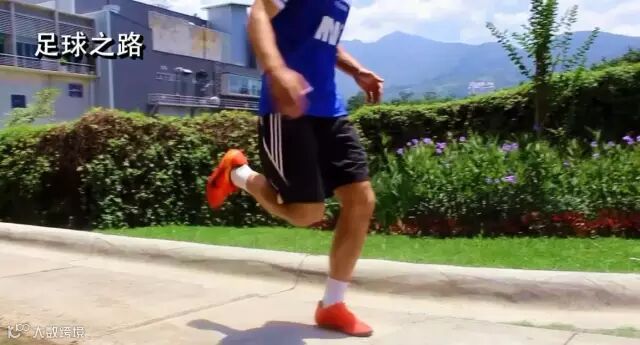 就像现在看到的一样,脚尖微微上翘,脚踝锁死,膝盖微屈以保持平衡。学习的时候也要注意这些问题,同时还要注意球的旋转。如果技术要领正确的话,球要么回旋要么几乎不转。