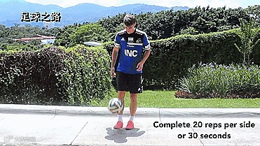 要点:你要确保每次球都在身前腰部以下,做的时候膝盖弯曲,以便做坏的时候随时调整脚步,摆动你的脚,让球在你的控制之下。