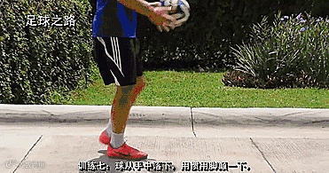 依然从手中开始,球落下反弹,用惯用脚将球踢起,这次不用手接,球自然落下,反弹再踢起。